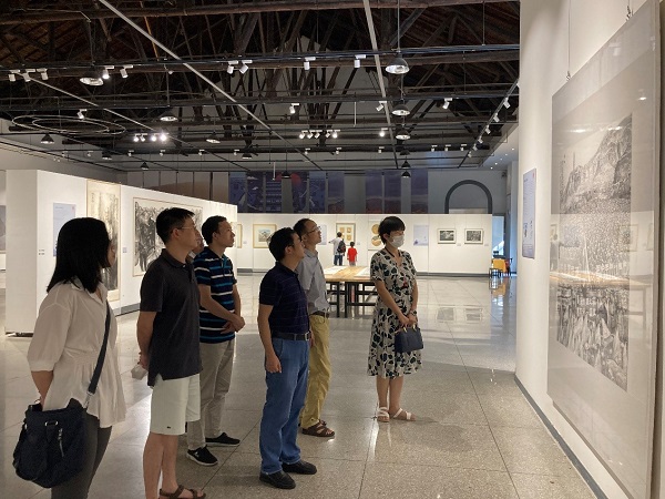 结束参观后,陈振夏同志说:“这些艺术家们秉持着对于历史、社会民生的关注,用细腻逼真的笔触合萼气韵生动的技法,记录着岁月的点点滴滴。让我印象最深刻的是那幅空无一人的街道上,只有一位外卖员骑着车在给家家户户送货,他们是新冠疫情下的“逆行者”。”