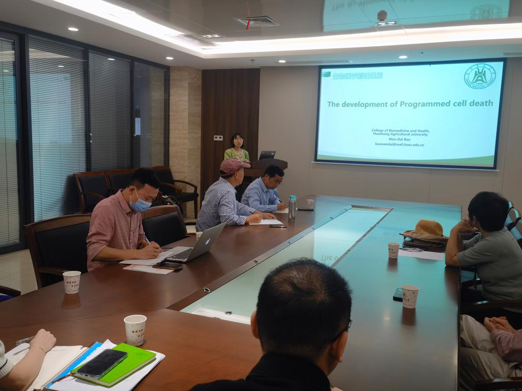 张晓妍教授以“Protein Sporting and vesicular transport”为题,灵活运用模式图、结合学科前沿,讲述了COPI、COPII、Clathrin等三种囊泡参与蛋白质分选到内质网上的过程及其特点。包文骀副教授通过程序性细胞死亡引导出细胞凋亡、细胞焦亡、坏死性凋亡、细胞自噬和铁死亡的概念和在癌症、神经退行性疾病中发挥的重要功能。“什么是意识?意识的生物学基础是什么?”郭敏副研究员以《光遗传学》为例,介绍了人类认识大脑的先进工具。