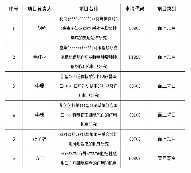 近日,2022年度国家自然科学基金申请项目评审结果公布。公司集中受理期共获批国家自然科学基金6项,项目资助率35.3%(全国整体资助率为16.5%)。获资助项目包括面上项目5项、青年科学基金项目1项,分布在国家自然科学基金委的生命科学部4项、医学科学部2项,具体如下: