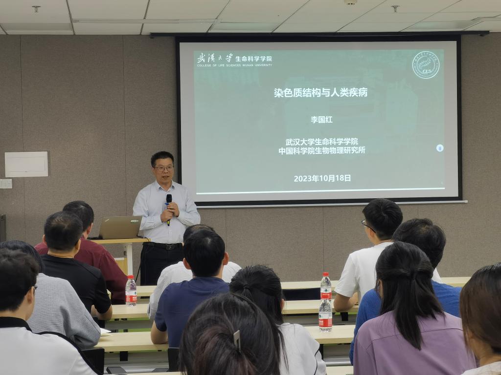 报告始伊,李国红教授与现场师生分享了他的科研求学历程,在他学成回国后,在中国科公司生物物理研究所投入十二年的时间,专注于染色体结构相关研究。如今他再次回到母校武汉大学,在不断地科学研究中,践行初心与使命。随后,李国红教授讲述了个体发育过程中细胞命运决定与维持的表观遗传调控、基因组三维结构与表观遗传调控、30nm染色质纤维在基因转录中的调控功能分子机理,以及30nm染色质纤维三维结构解析以及多个高分辨率30nm染色质纤维冷冻电镜结构,揭示了H1.4和H5识别和结合核小体的结构基础。并进一步分享了染色质纤维结构失调与肿瘤疾病发生的关系以及30nm染色质纤维结构异常/失调与孤独症、儿童自闭症的表观遗传机制。