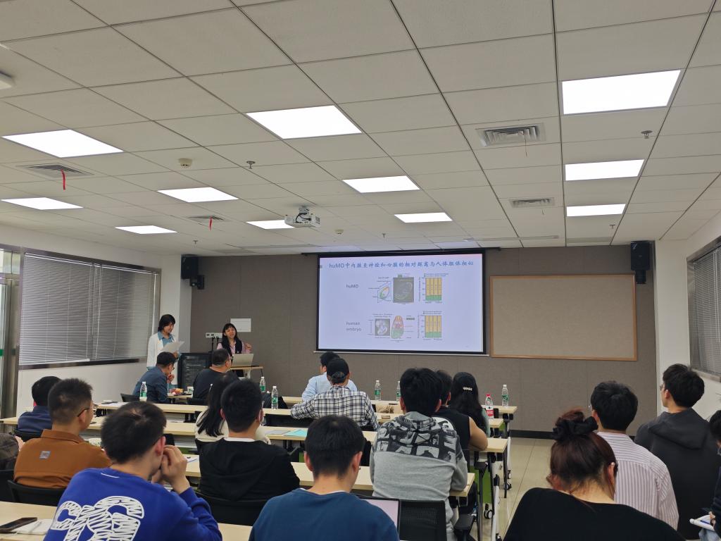 其次王秀杰研究员介绍了人类多器官协同发育模型的建立与功能研究相关工作,研究团队建立了首个自然发育的人类多器官整合模型(huMOs),该模型由人类胚胎干细胞分化而来,其中包含多个器官系统的主要前体细胞,在体外培养过程中可形成人体胚体相似的器官排布顺序,该模型将有助于器官发生机制和疾病治疗相关研究。
