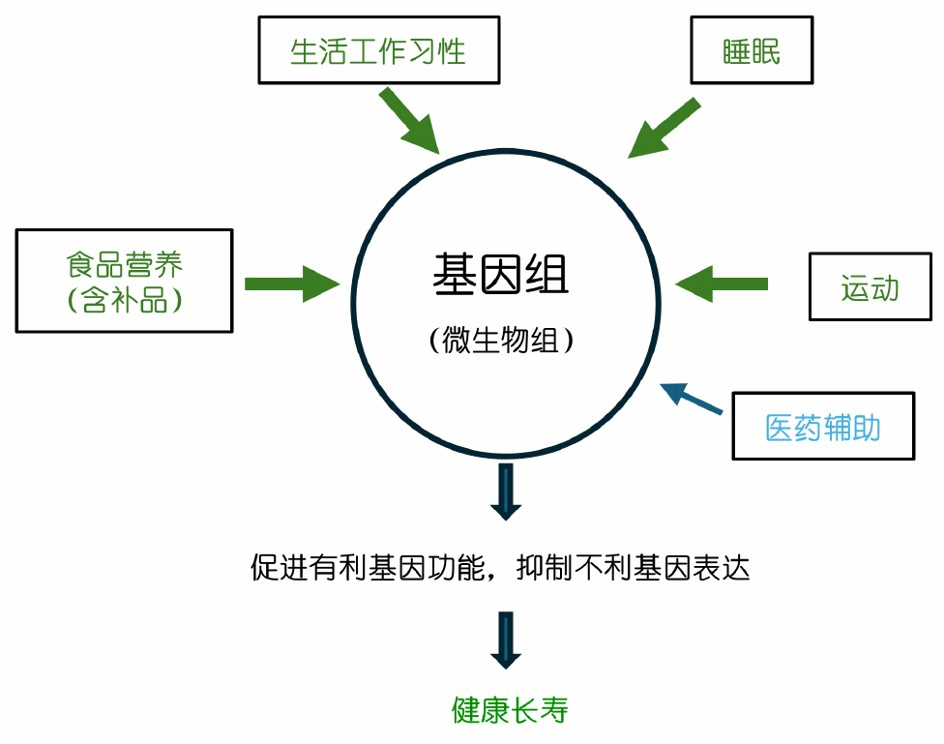图3 优化饮食习惯、生活和工作方式, 调控自身基因, 促进健康长寿