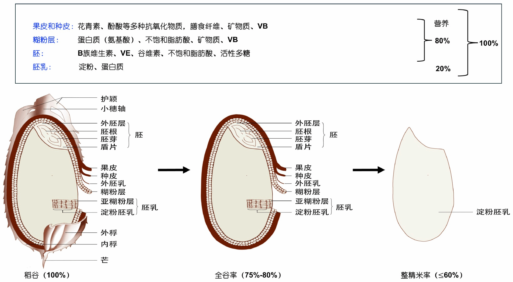 图2 稻谷的营养成分及其在加工过程中的变化